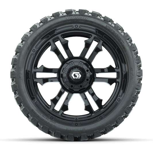 GTW® Barricade Gloss Black 15 in Wheels with 23x10.00-R15 Maverick All-Terrain Tires – Set of 4