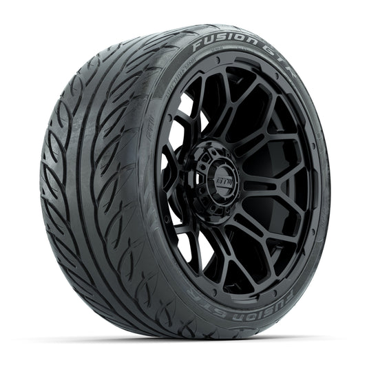 GTW® Barricade Gloss Black 15 in Wheels with 215-40-R15 Fusion GTR Street Tires - Set of 4