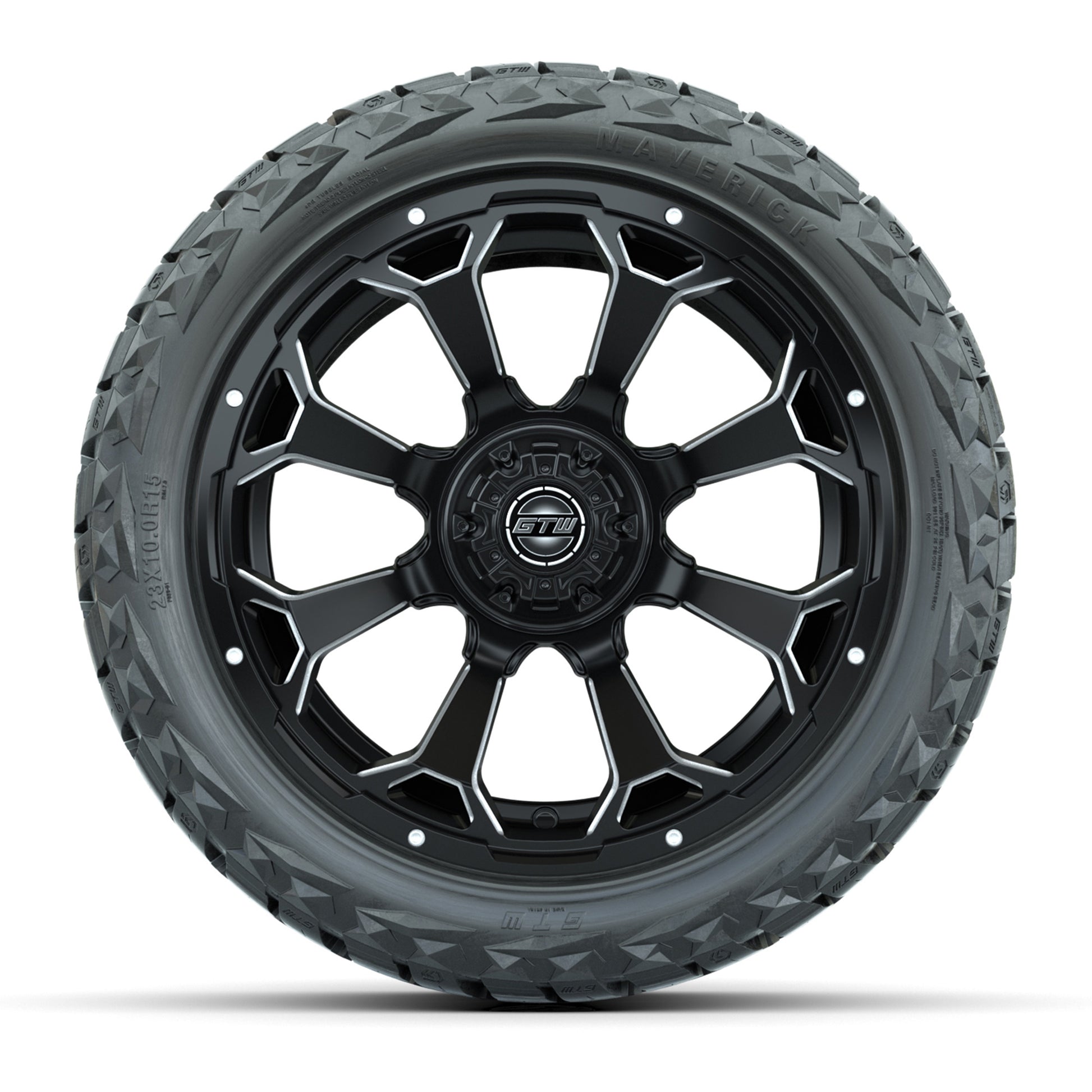 GTW® Raven Matte Black 15 in Wheels with 23x10.00-R15 Maverick All-Terrain Tires – Set of 4