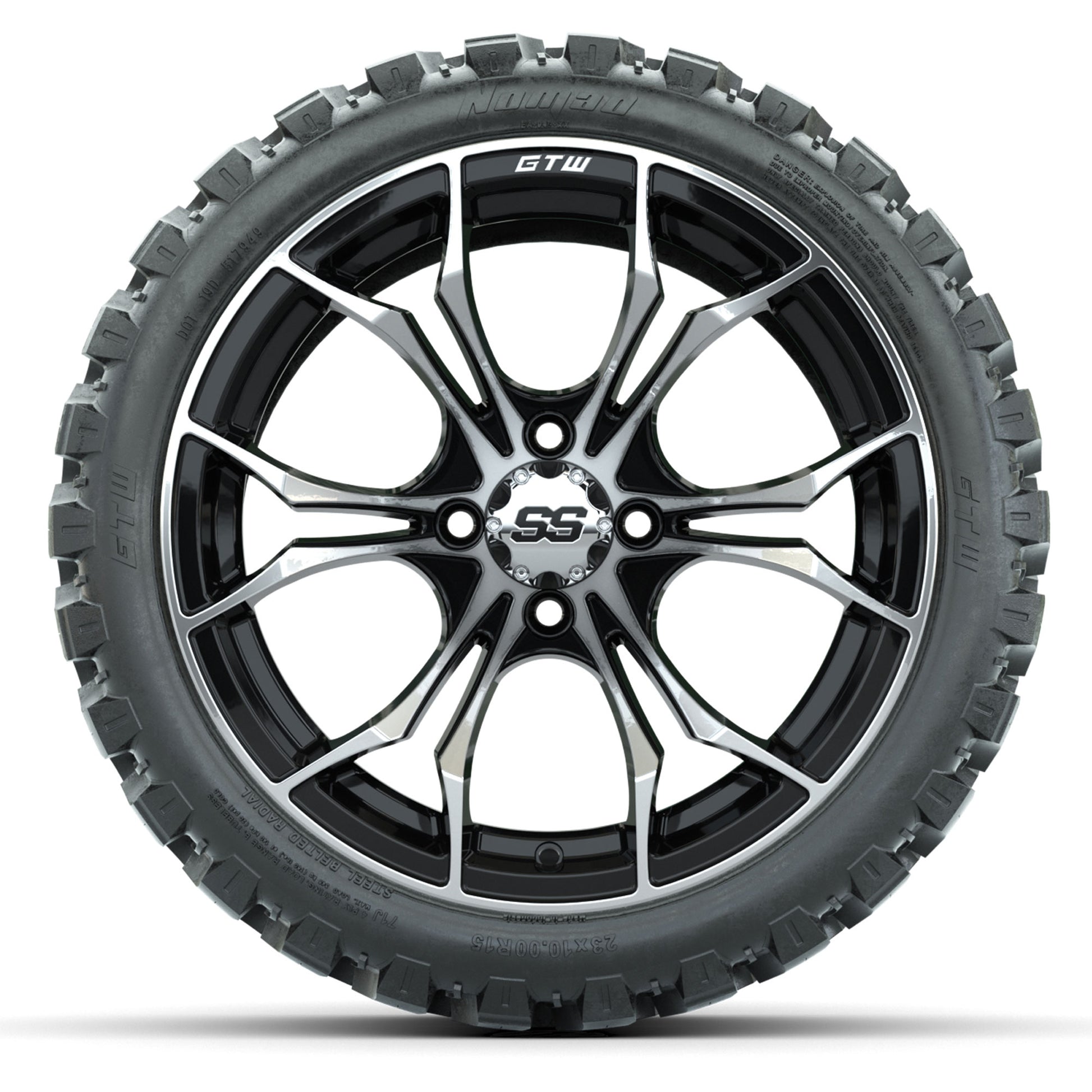 GTW® Spyder Machined/Black 15 in Wheels with 23 in Nomad All Terrain Tires - Set of 4