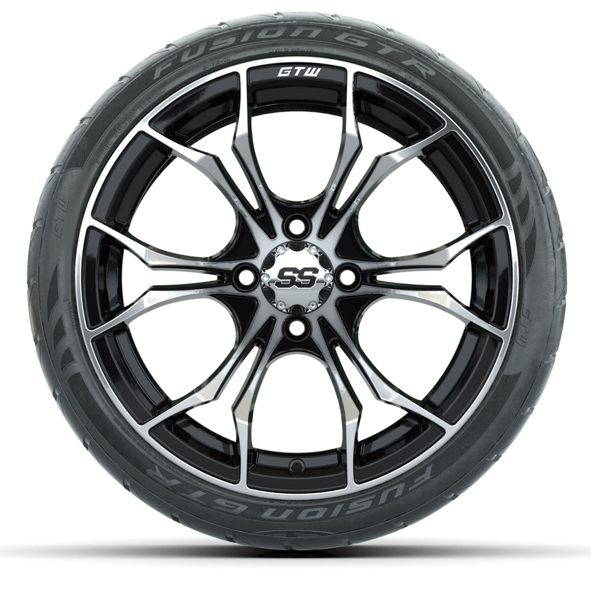 Set of (4) 15-inch GTW Spyder Machined & Black Wheels Mounted on GTW Fusion GTR Street Tires